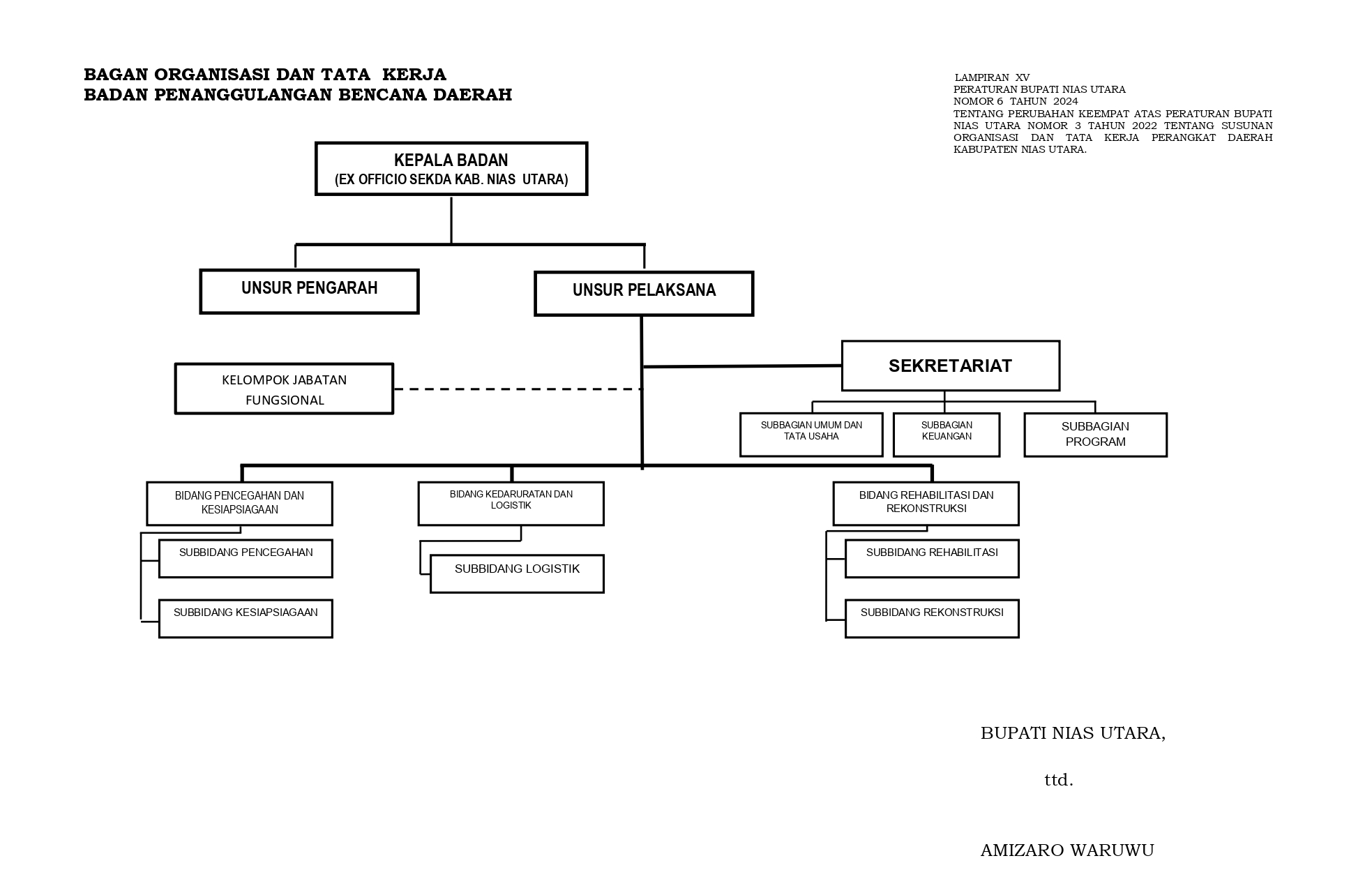 - Peraturan Daerah Kabupaten Nias Utara Nomor 3 Tahun 2019 Tentang Perubahan Peraturan Daerah Kabupaten Nias Utara Nomor 40 Tahun 2016 tentang susunan Organisasi dan Tata Kerja Perangkat Daerah Kabupaten Nias Utara;